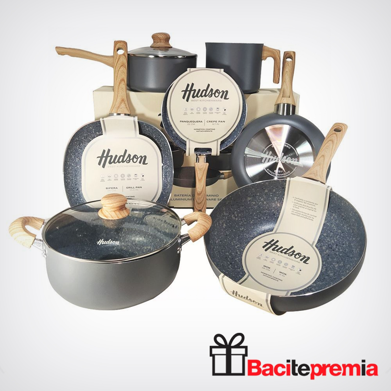HUDSON es una marca que fabrica artículos de cocción de acero inoxidable y aluminio con antiadherente y cerámica, aportando estilo y diseño.