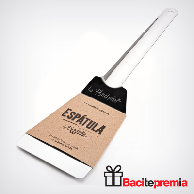 Espátula La Planchetta de acero inoxidable, mango anatómico y ángulos de 90º para facilitar llegar al borde de cualquiera de tus planchettas. Uso profesional u hogareño.